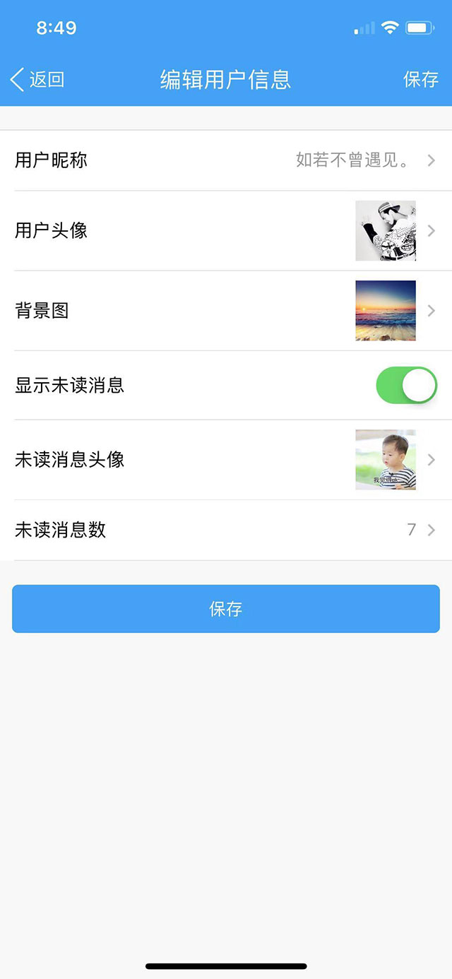 2.在设置页面可以设置微信朋友圈个人头像、背景图片、还有新消息的朋友头像和未读消息数目