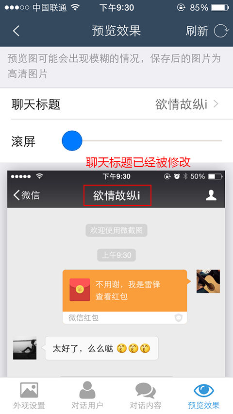 打开微信对话生成器,底部导航菜单选择“预览效果”