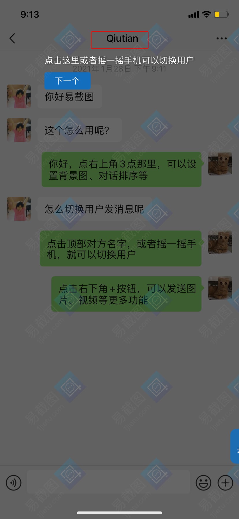 马上下载易截图试试如何切换用户发聊天?功能,支持苹果ios,安卓Android