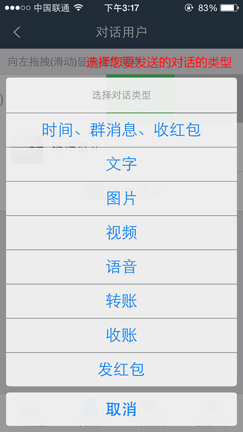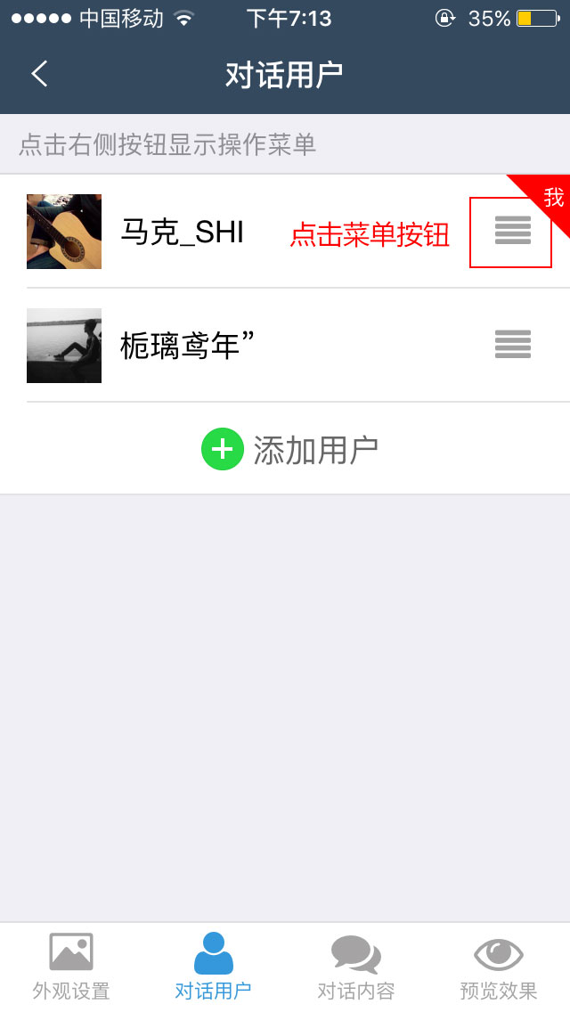 打开微信对话生成器,底部导航菜单选择“对话用户”