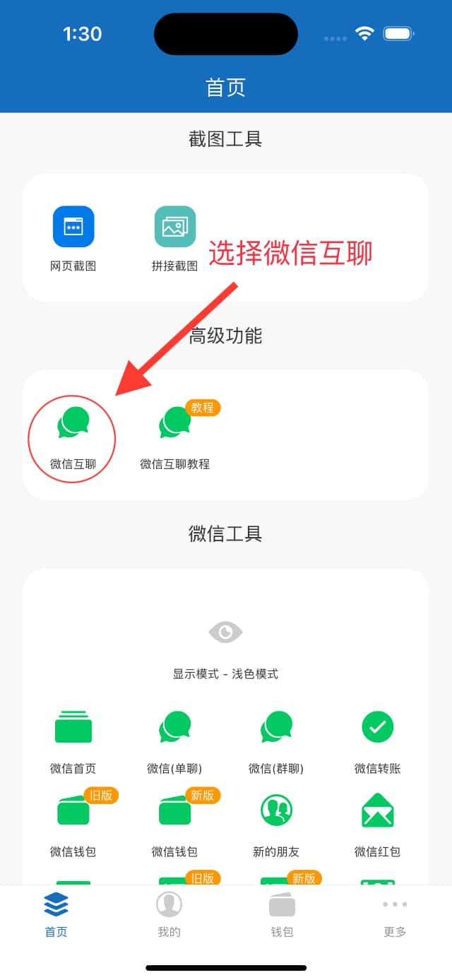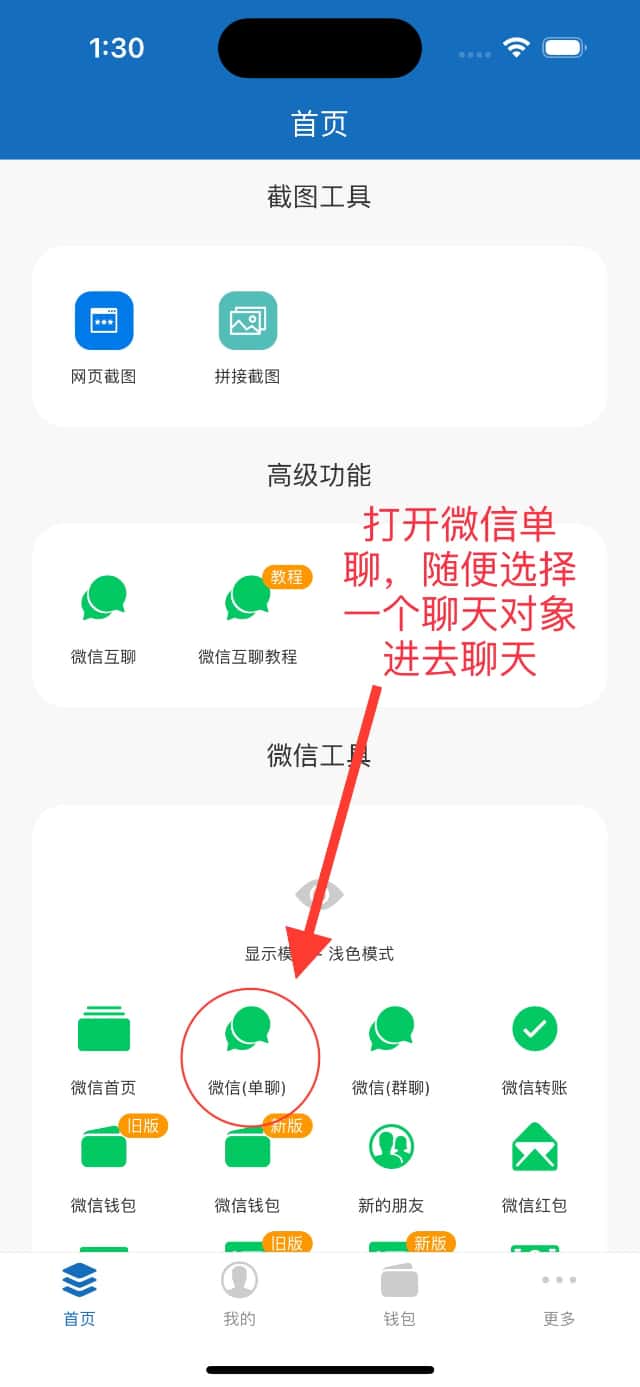 3.首页选择微信单聊,然后随便选择一个对象进入聊天页面
